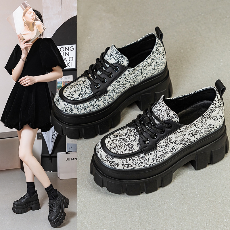 真皮新中式国潮风爆款小皮鞋女春夏增高8cm粗跟松糕厚底乐福单鞋