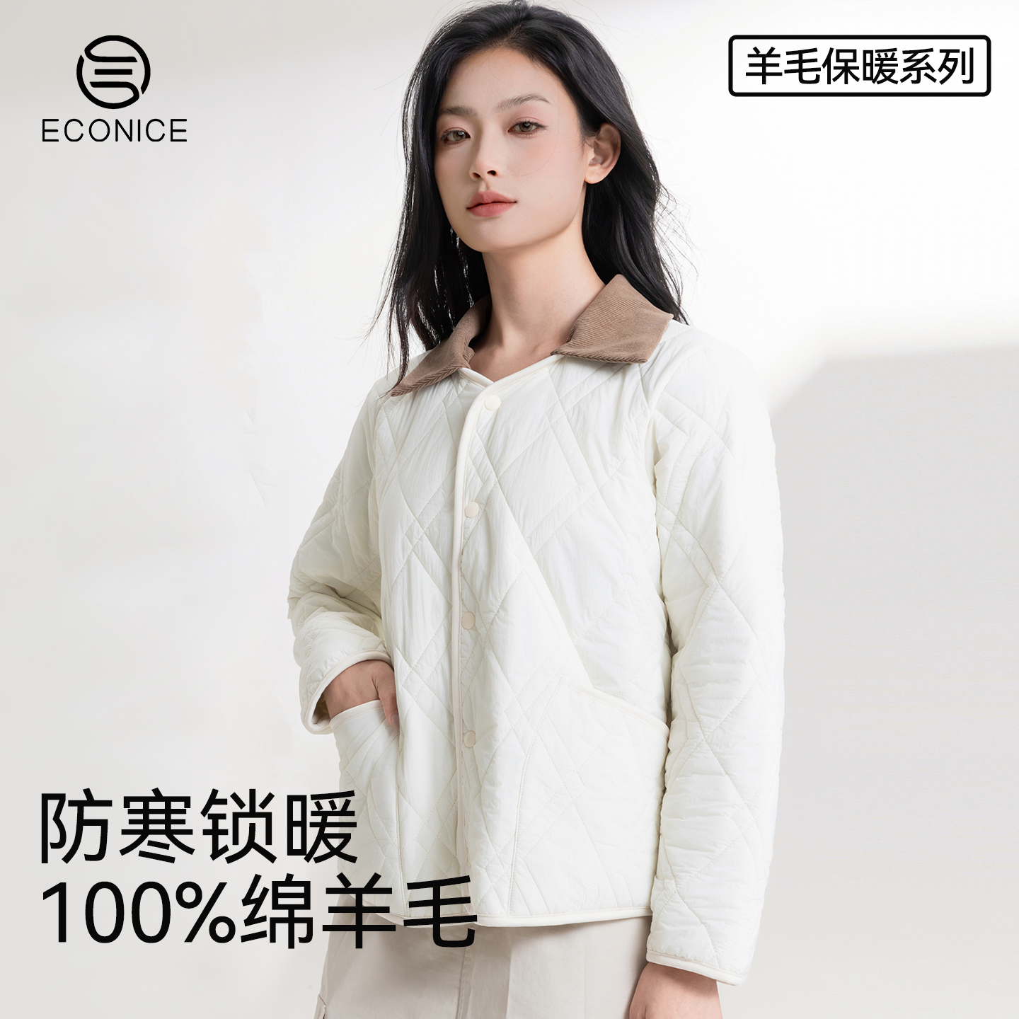 【三防+美利奴羊毛】PRICH时尚翻领菱格棉服2025冬季新款外套女