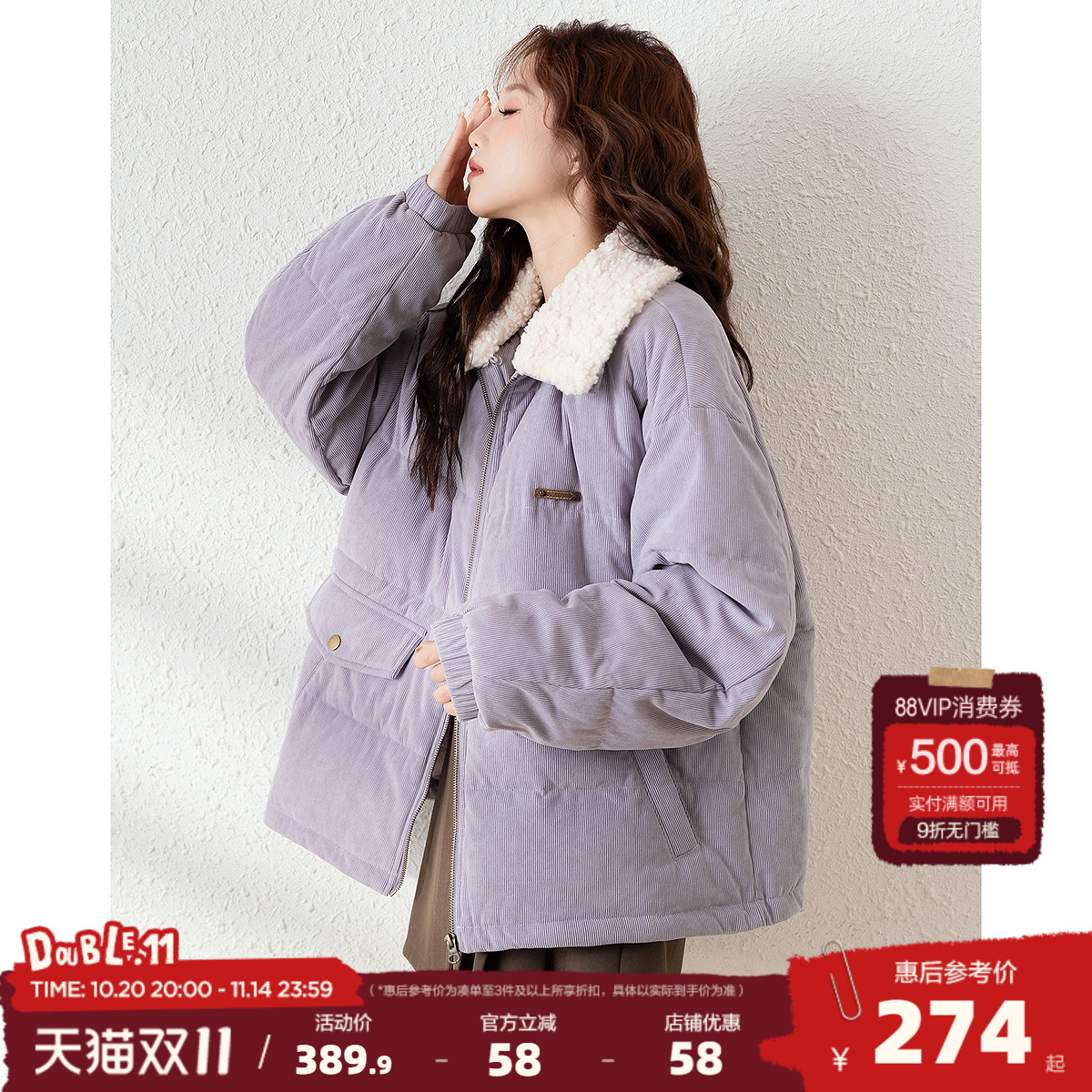 NOA真维斯美式复古灯芯绒外套女仿羊羔毛翻领棉衣工装夹克上衣女