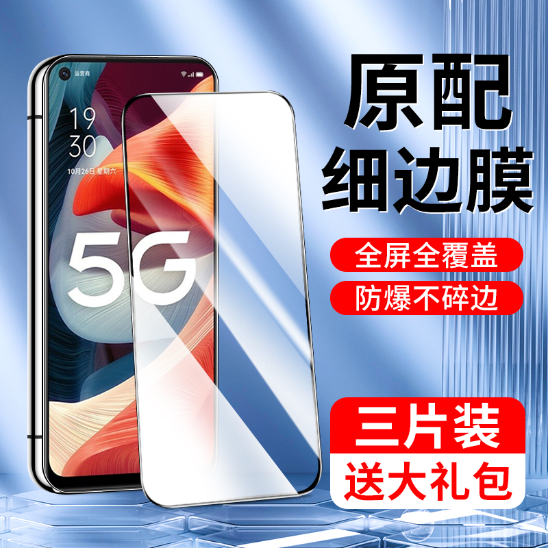适用oppoA93钢化膜oppoReno5手机6Reno8全屏A72A55A53A32原装A96k11x蓝光a52a2k5k9k10贴56a93a92s4Pro+7se3i