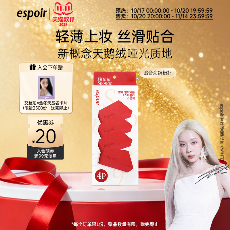 eSpoir/艾丝珀切面粉扑海绵红色美妆蛋4枚新手不吃粉均匀服帖