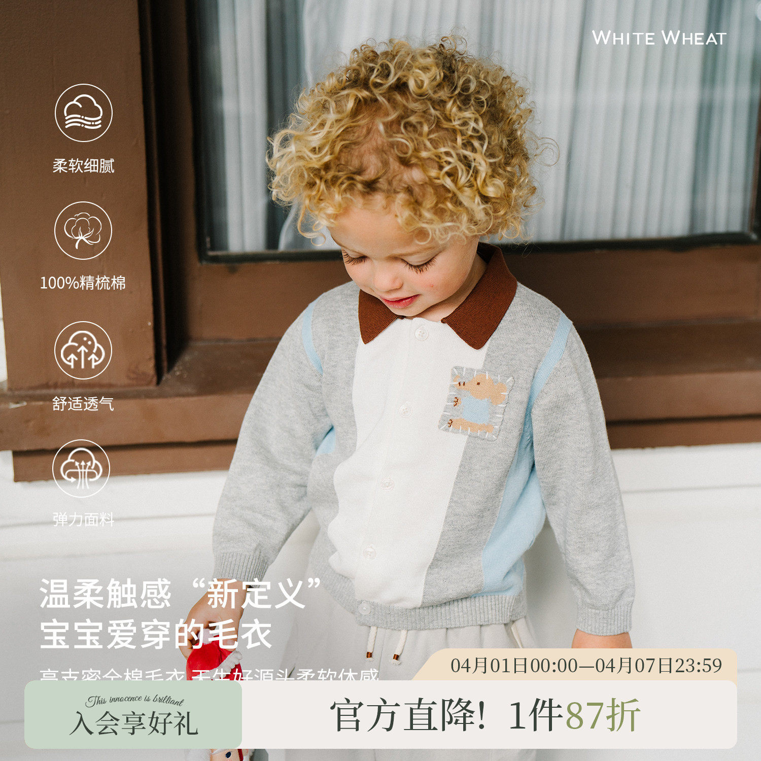 whitewheat儿童26春秋季新款上衣男女童毛线衣毛衣纯棉polo针织衫