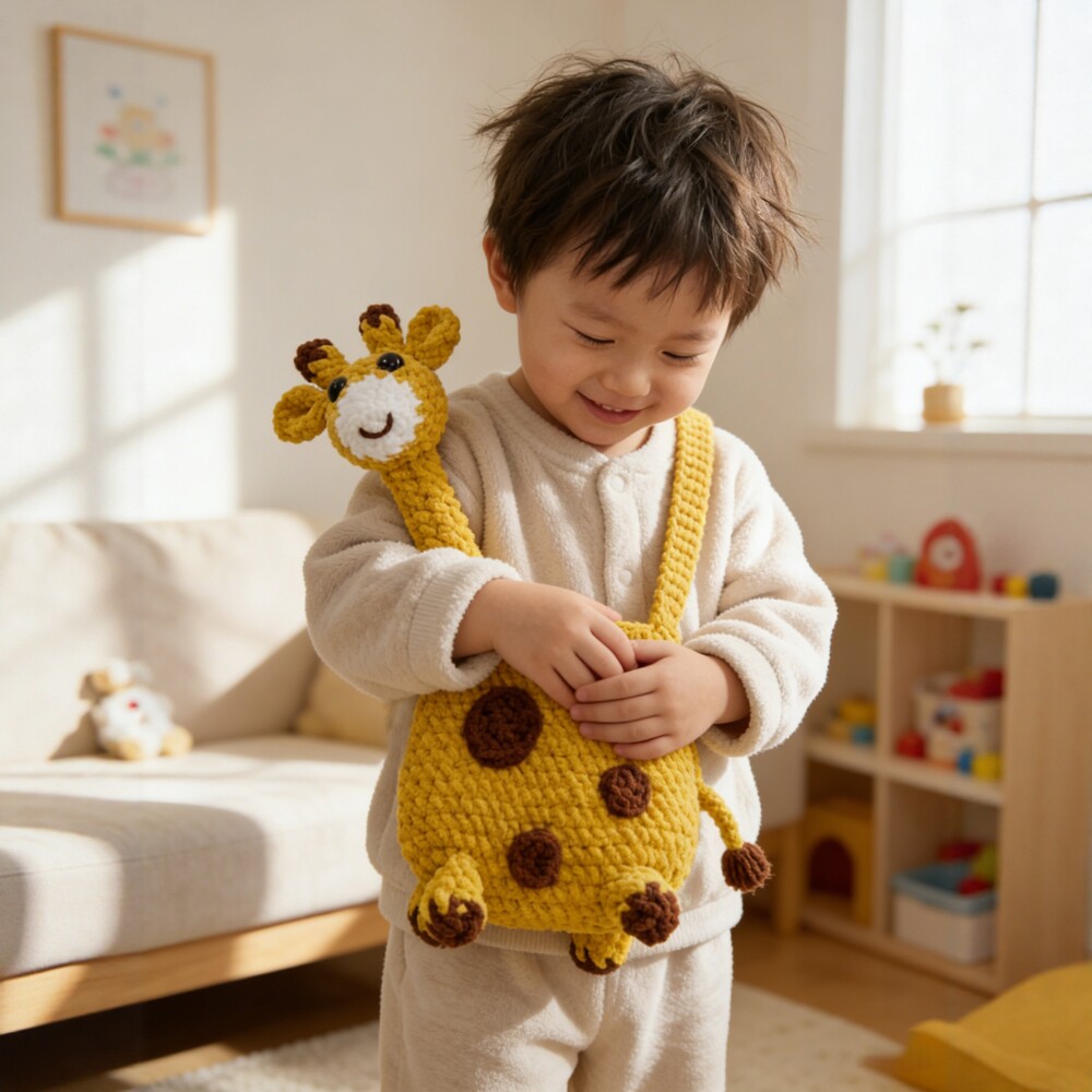 手工钩织长颈鹿毛线编织包DIY材料包儿童斜挎包钩针玩偶创意礼物
