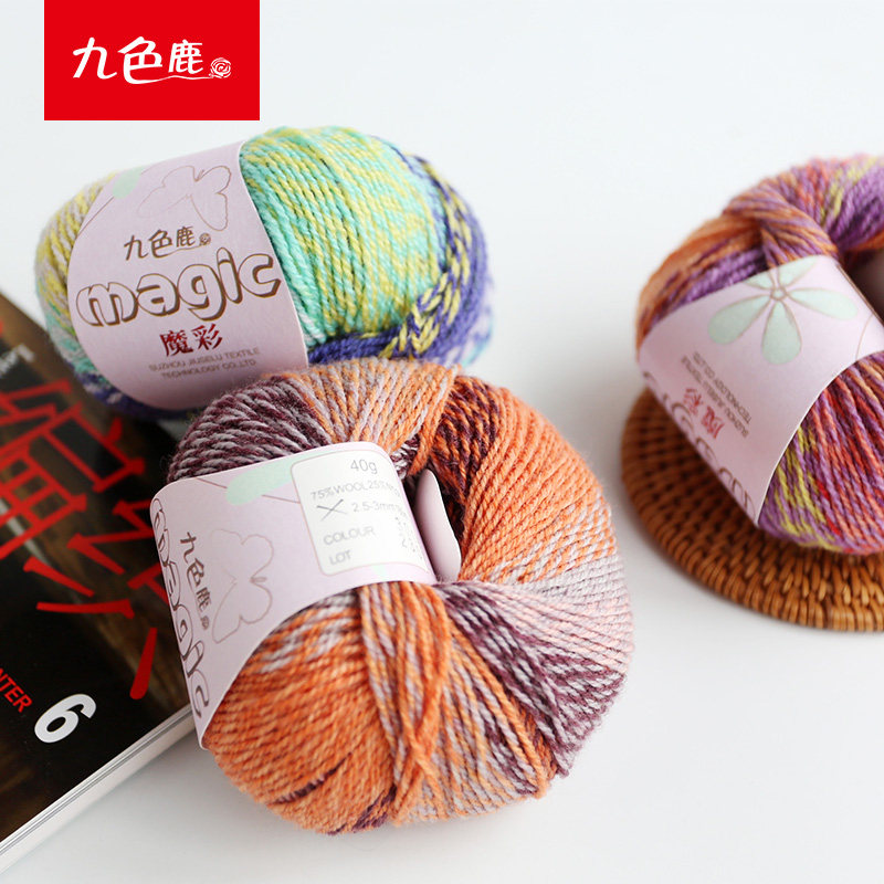 手编中粗彩色段染羊毛线手工编织成人儿童毛衣线DIY钩拖鞋线围巾