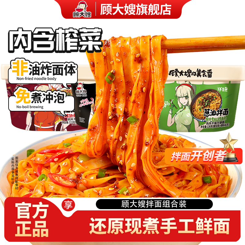 顾大嫂拌面条炸酱面干拌面早餐速食袋装方便面皮泡面食品葱油夜宵