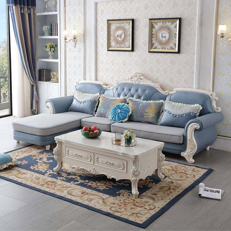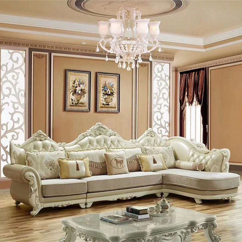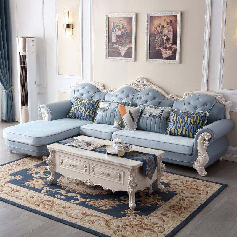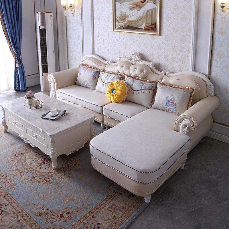 欧式布艺沙发组合转角L 贵妃客厅奢华大小户型雕花实木宫廷简欧风