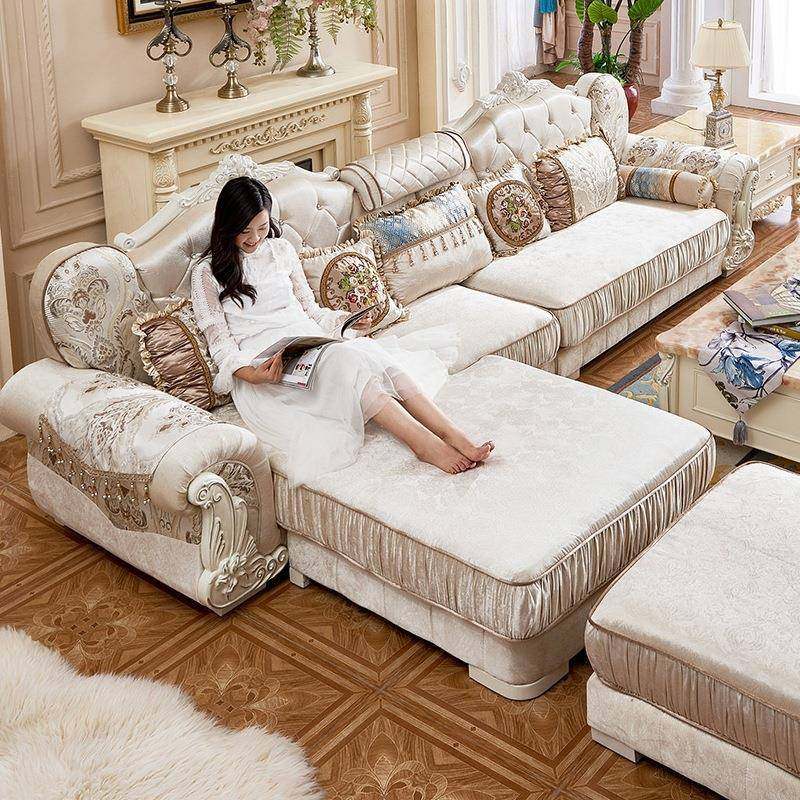 欧式布艺沙发组合客厅简约转角L贵妃实木大小户型奢华沙发可拆洗