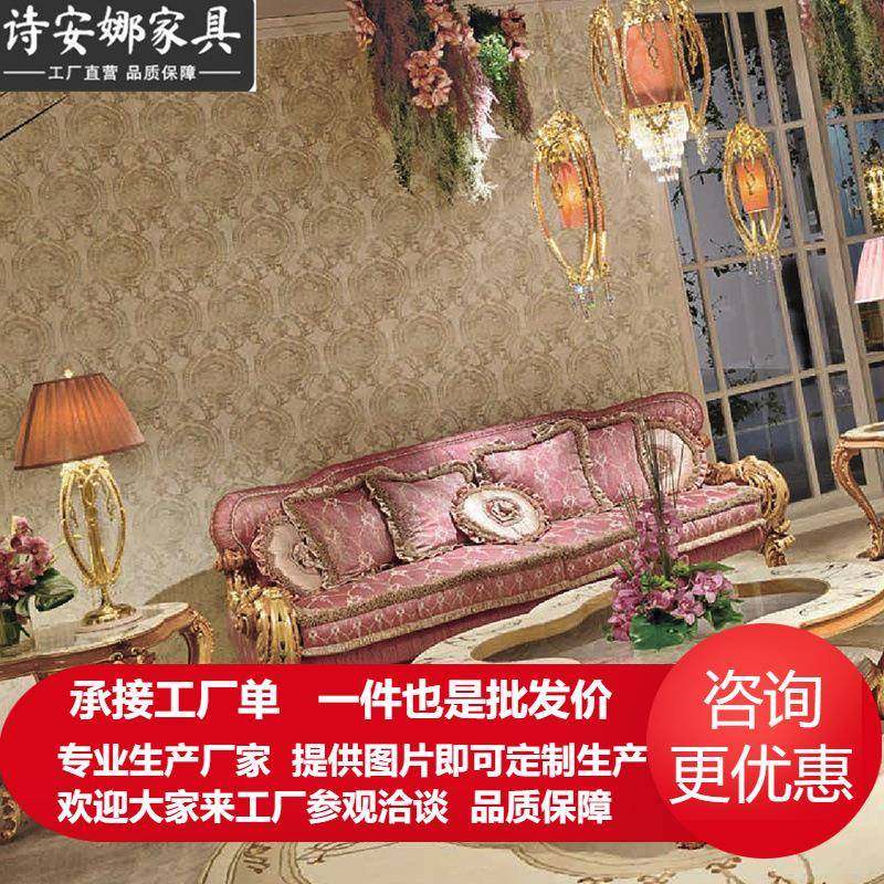 奢华欧式布艺沙发组合新古典客厅实木雕花大户型粉色布艺沙发家具