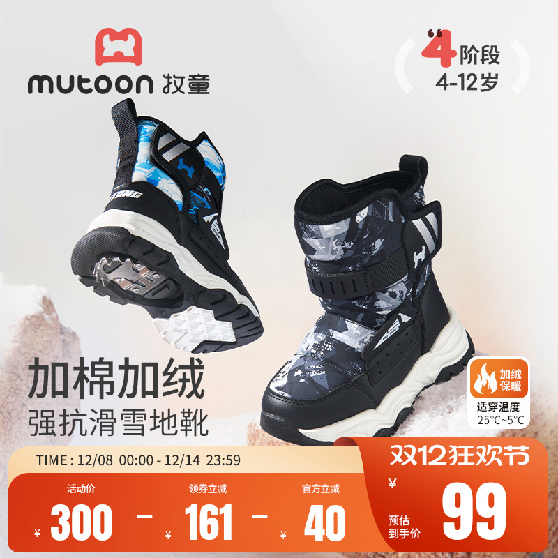 牧童儿童雪地靴男童冬季加绒保暖大棉滑雪鞋女童加厚防滑冰爪棉靴