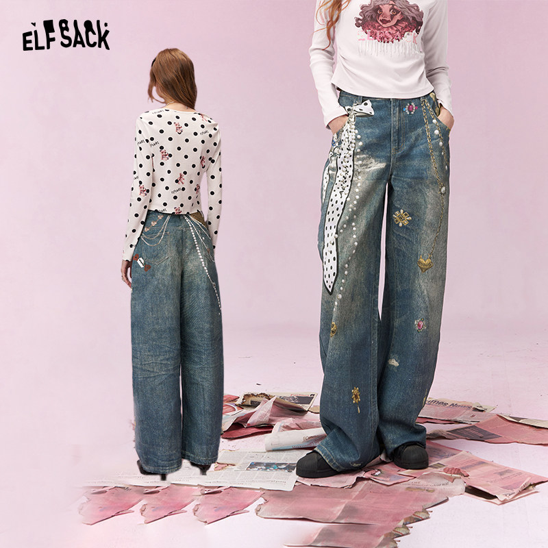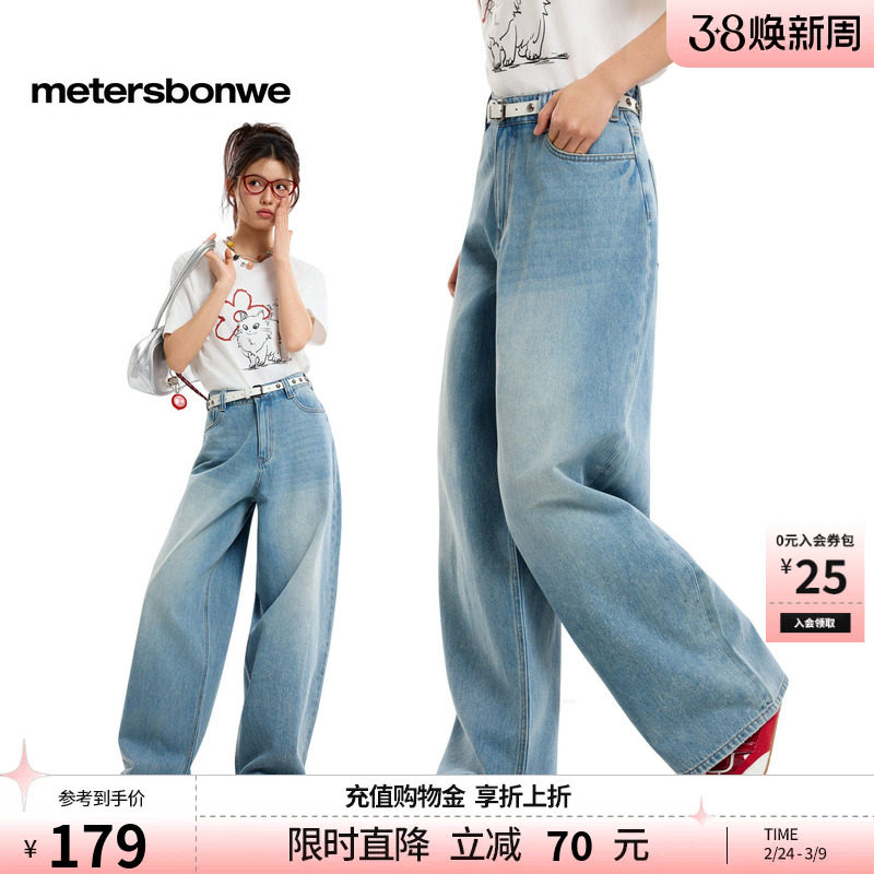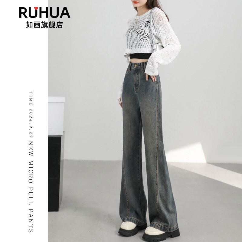 - 微喇叭牛仔裤女 九分 韩国 高腰
