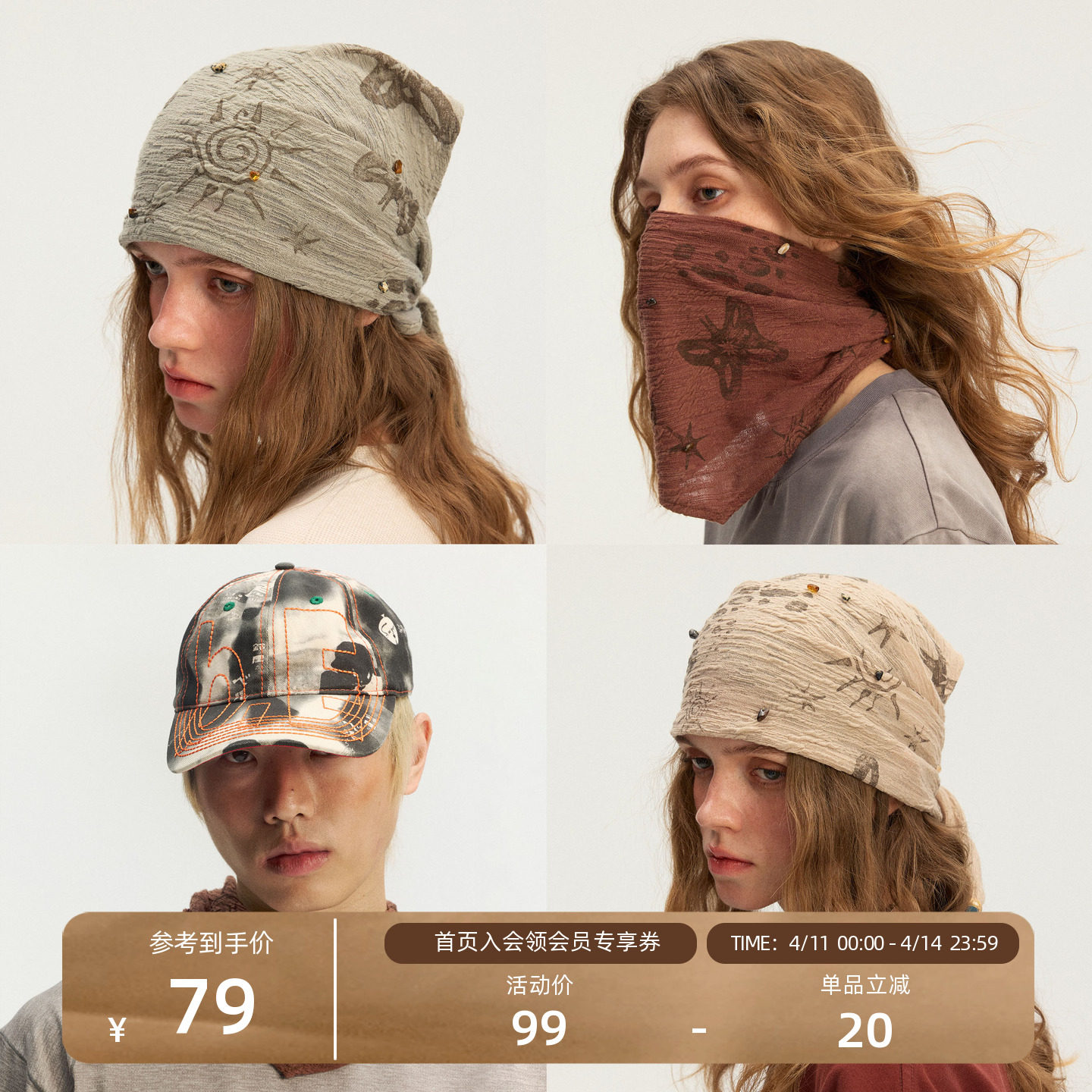 瞬时山野Monterest马年限定废土风印花褶皱肌理串珠亲肤头巾围巾