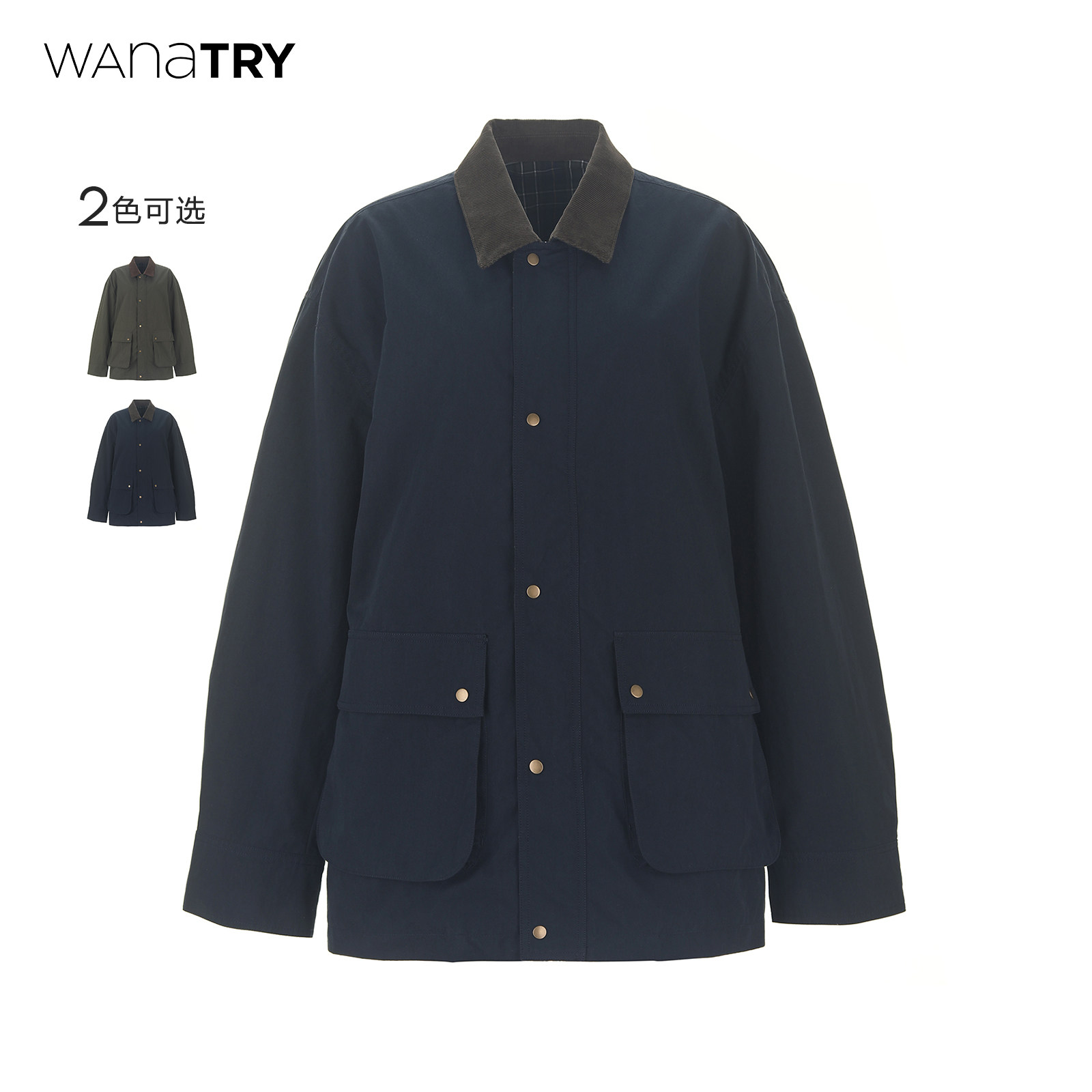 wana try复古撞色重工夹克外套2025新品午夜蓝休闲百搭宽松外套女