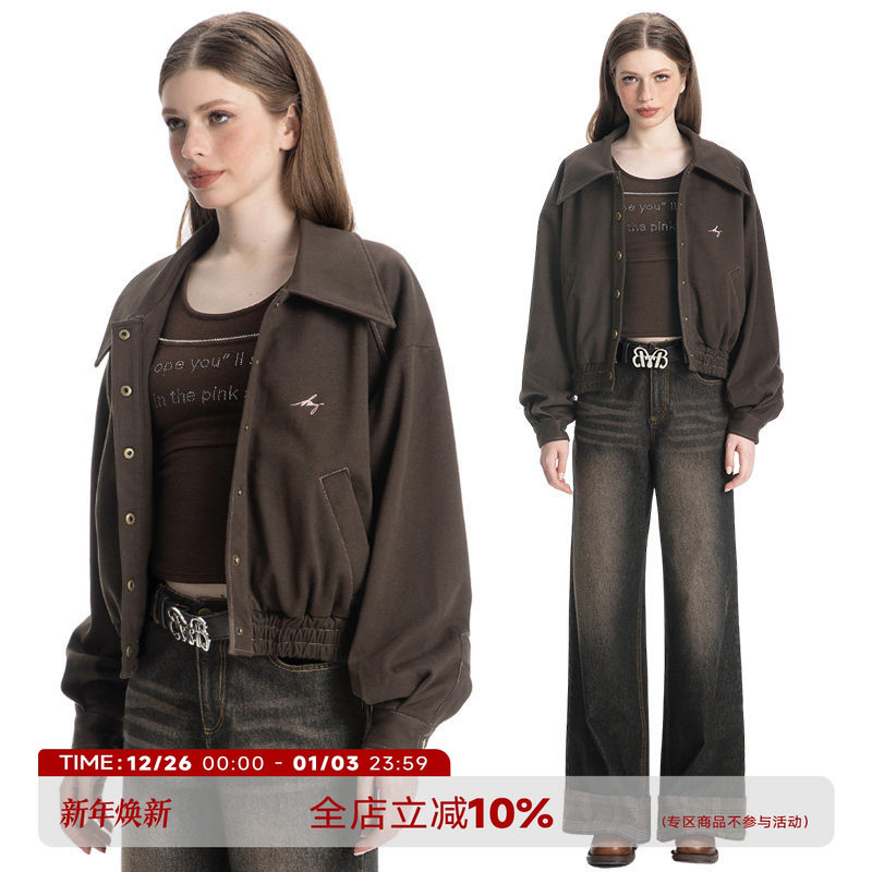 ABMY 纽约街头 美式复古宽松外套女街头百搭设计感翻领夹克上衣
