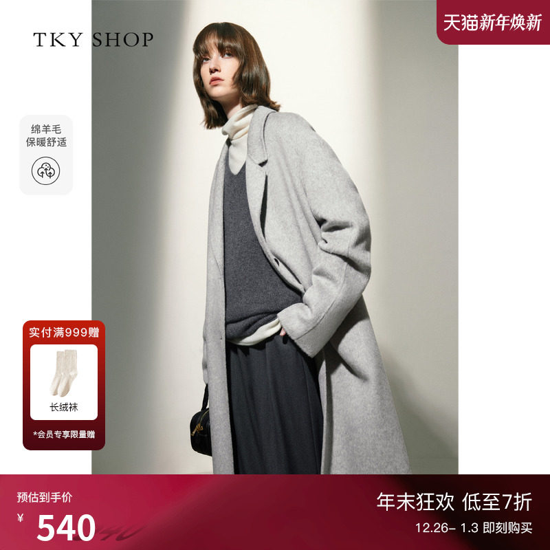 TKY SHOP长款羊毛大衣女冬新款通勤轻奢毛呢外套高级感宽松外套女