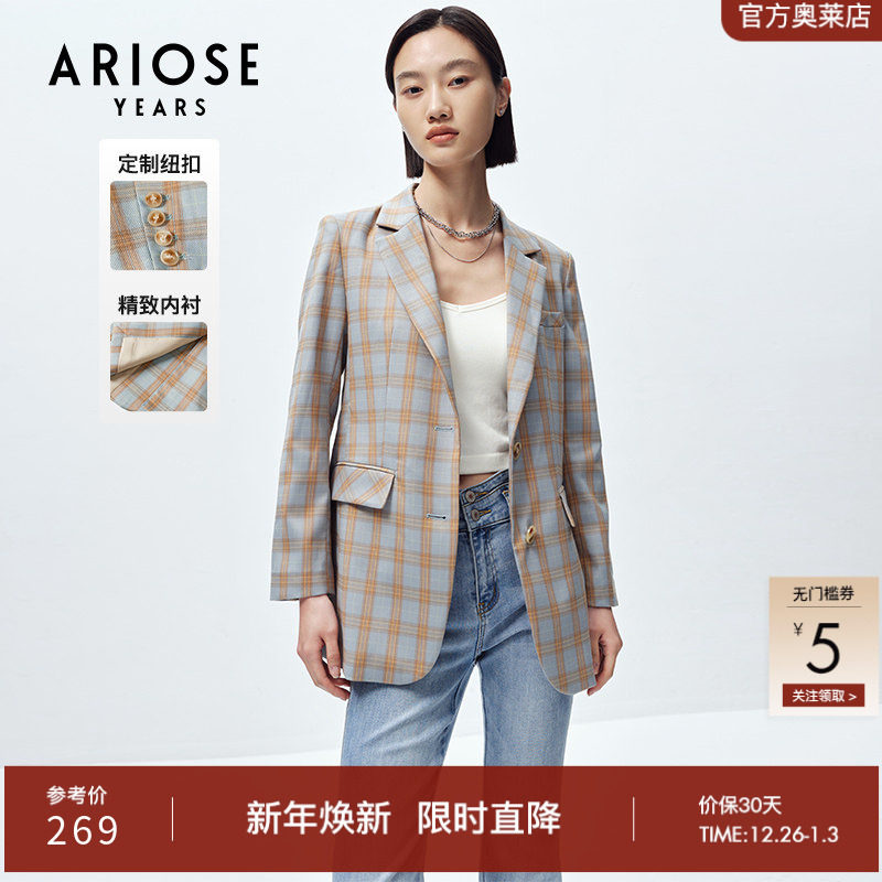 艾诺丝雅诗秋新款复古色织格纹西装休闲宽松外套女20311312