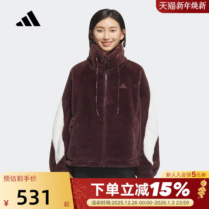 adidas阿迪达斯冬人造毛皮保暖休闲宽松外套女子针织夹克 KC0078