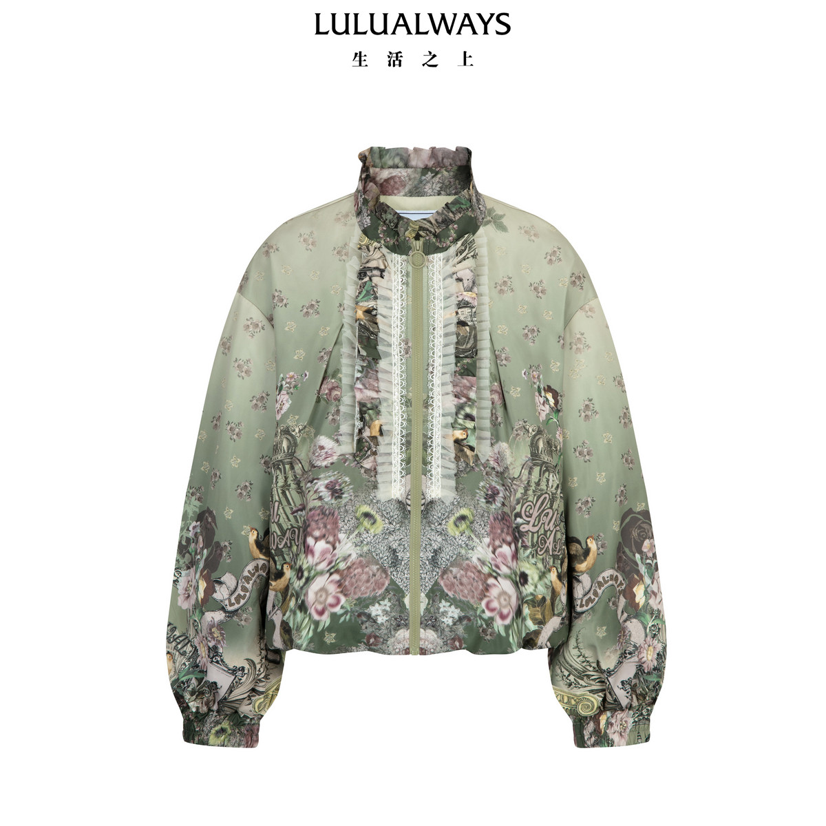 LULUALWAYS【商场同款】26春季新款甜美清新绿色荷叶边宽松外套女
