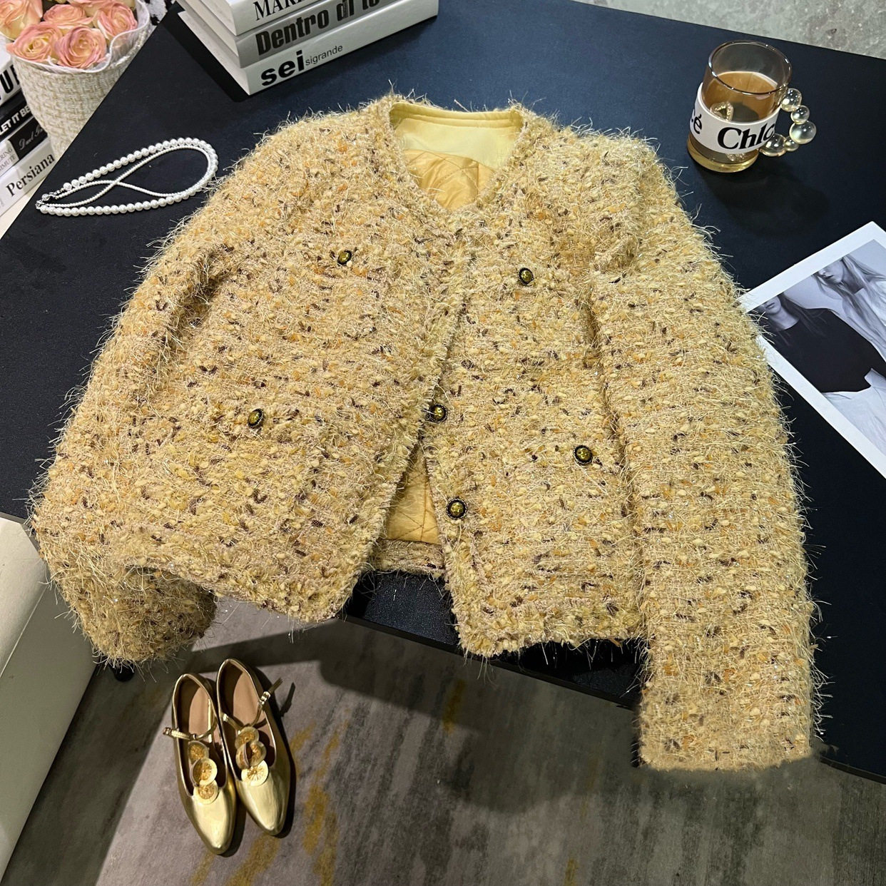 Manil鎏金气质名媛小香高级宽松外套女秋冬新款羽绒服洋气鹅黄色