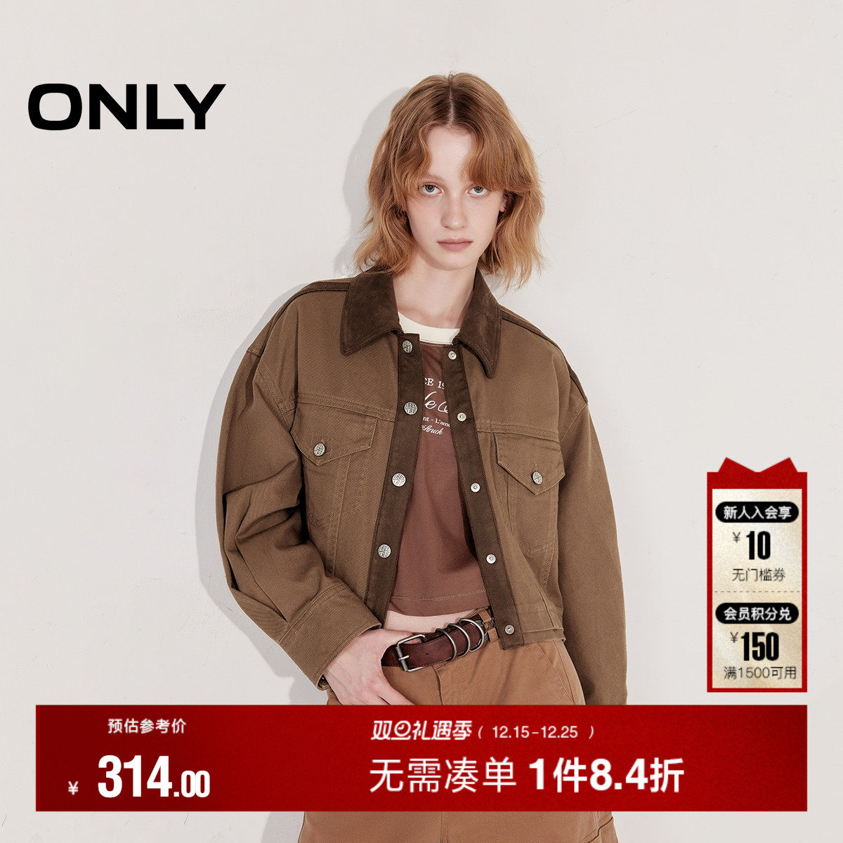 ONLY2025秋季新款休闲复古拼接翻领短款宽松外套女|125136017