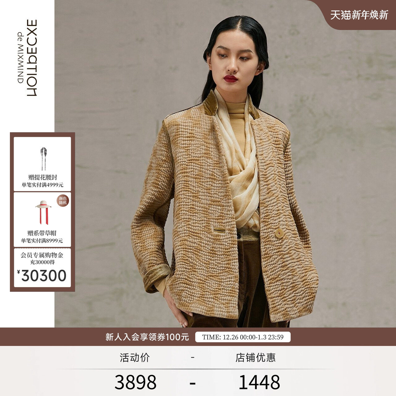 EXCEPTION例外春秋款丝麻混纺提花撞料设计香风宽松外套女