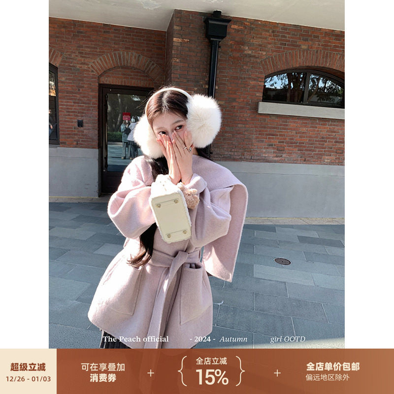 thepeachofficial【德尔畔冬日】羊毛双面呢大衣收腰宽松外套女冬
