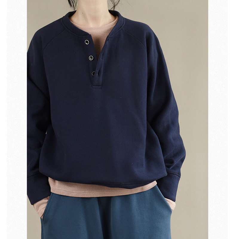 新款加绒加厚纽扣设计短款慵懒风棉卫衣T恤宽松外套女2025秋冬