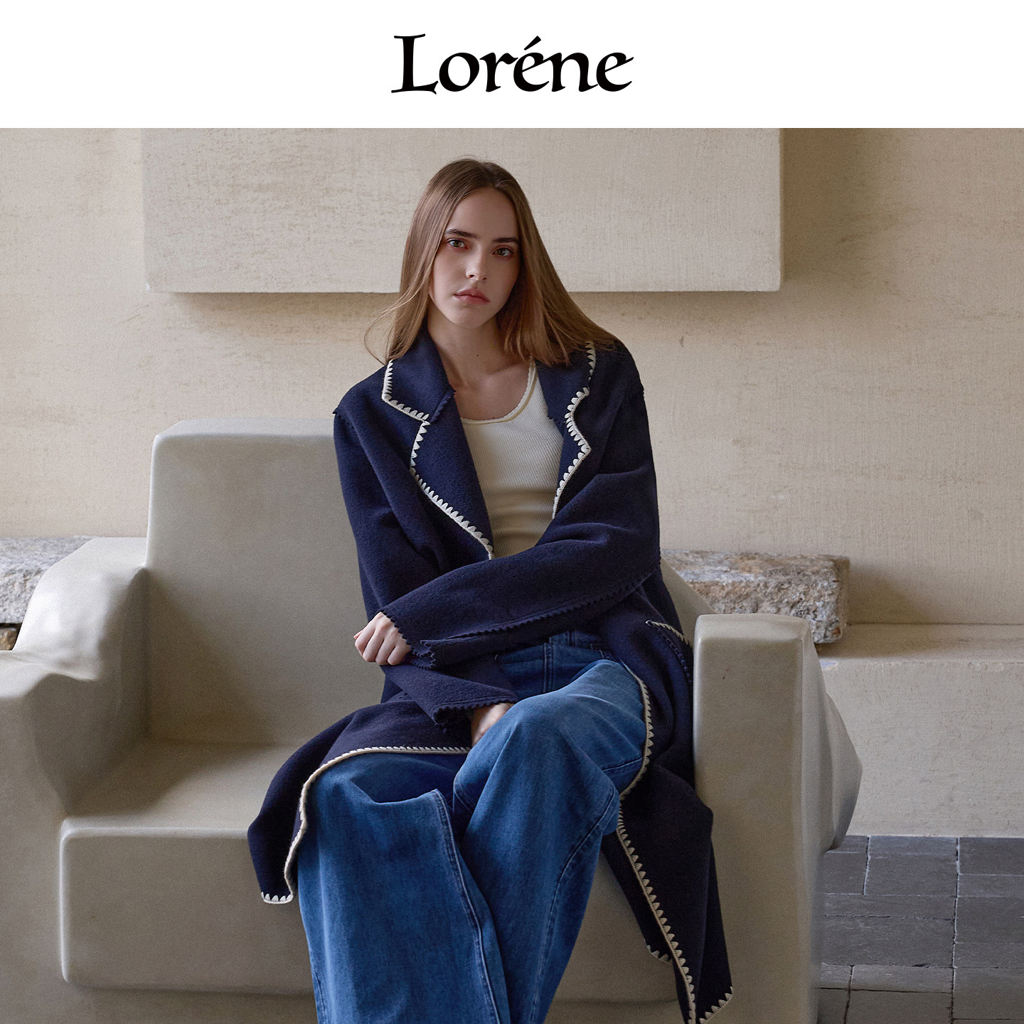 Lorene羊毛大衣女长款翻领毛呢大衣百分百羊毛双面呢宽松外套女