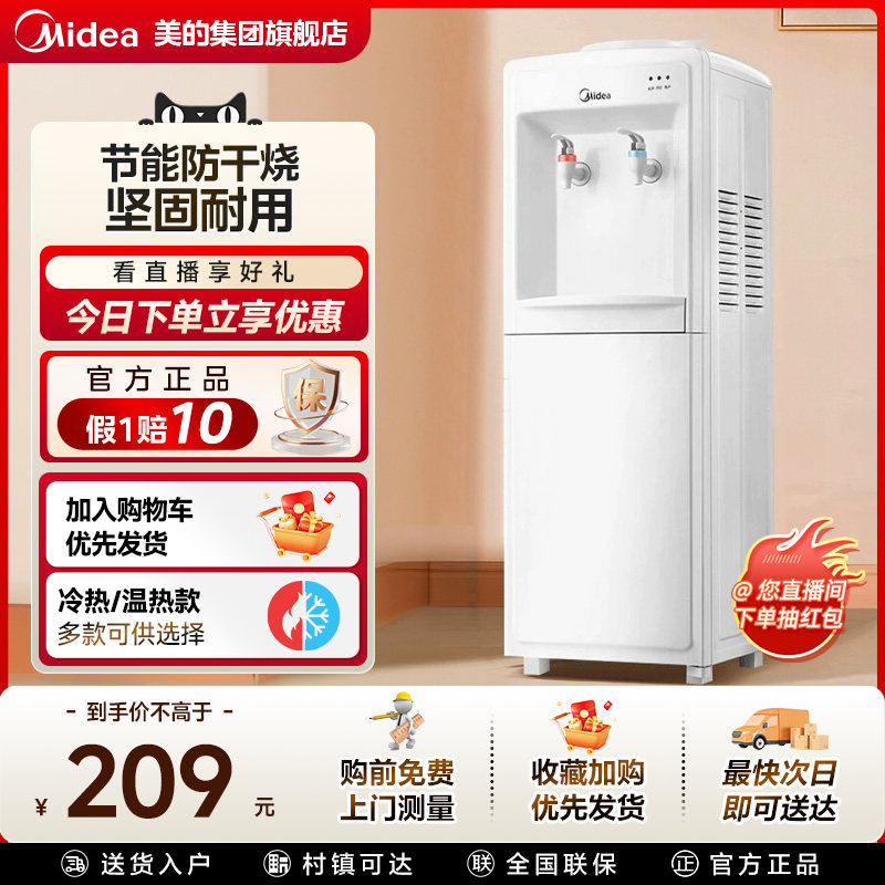 美的饮水机家用立式温冷热全自动小型迷你加热器双门桶装水办公室