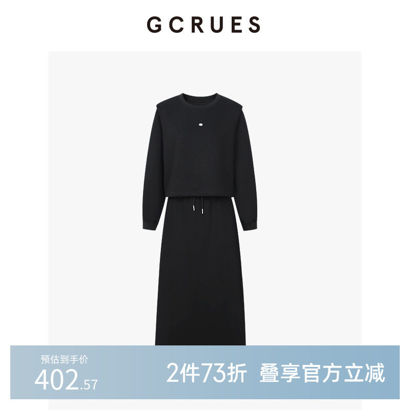 GCRUES商场同款懒人穿搭黑色卫衣半身裙套装女春秋 G02C13A1462