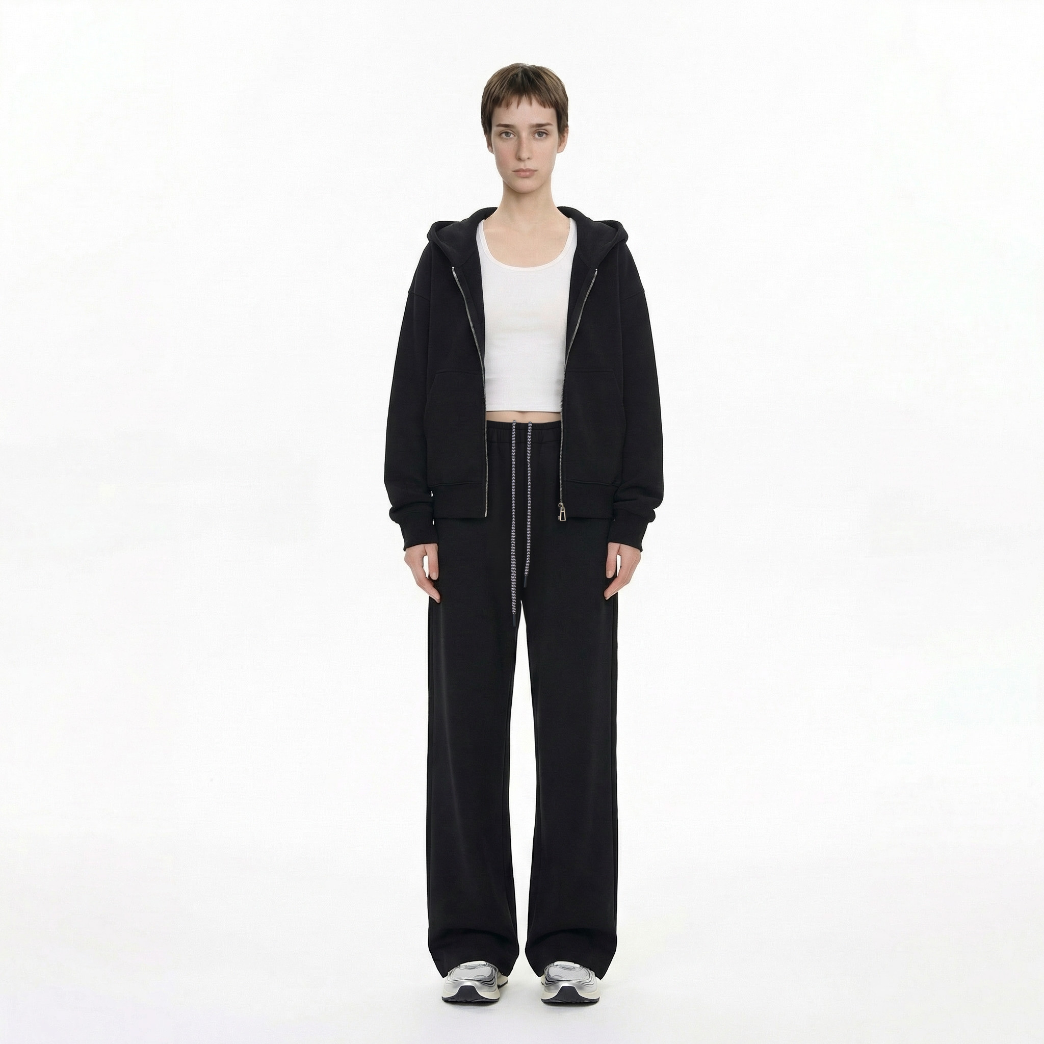 26年春季LazyMint简约运动风黑色连帽拉链卫衣套装女宽松休闲百搭