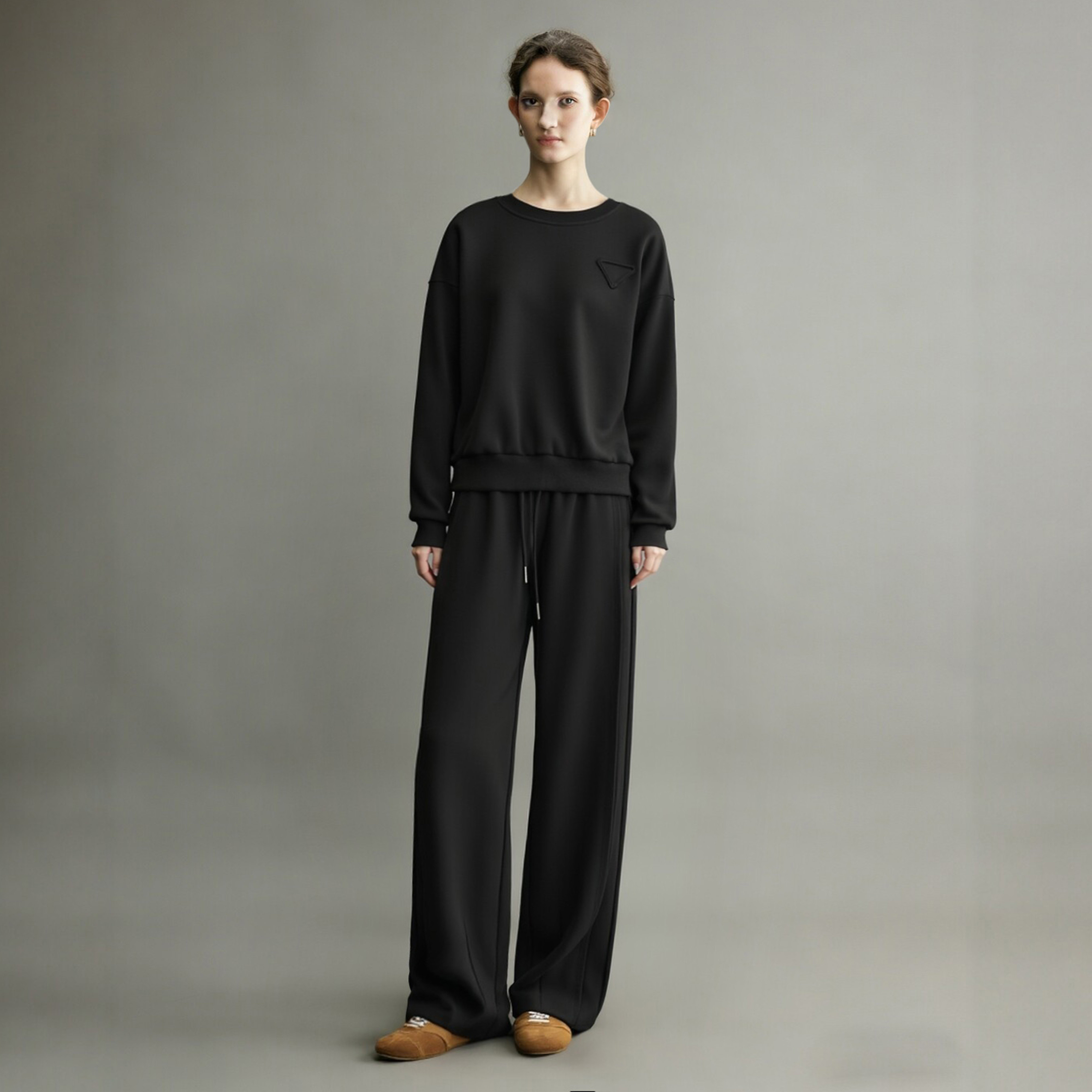 黑色运动套装女2026春季新款超火慵懒感圆领卫衣阔腿裤休闲两件套