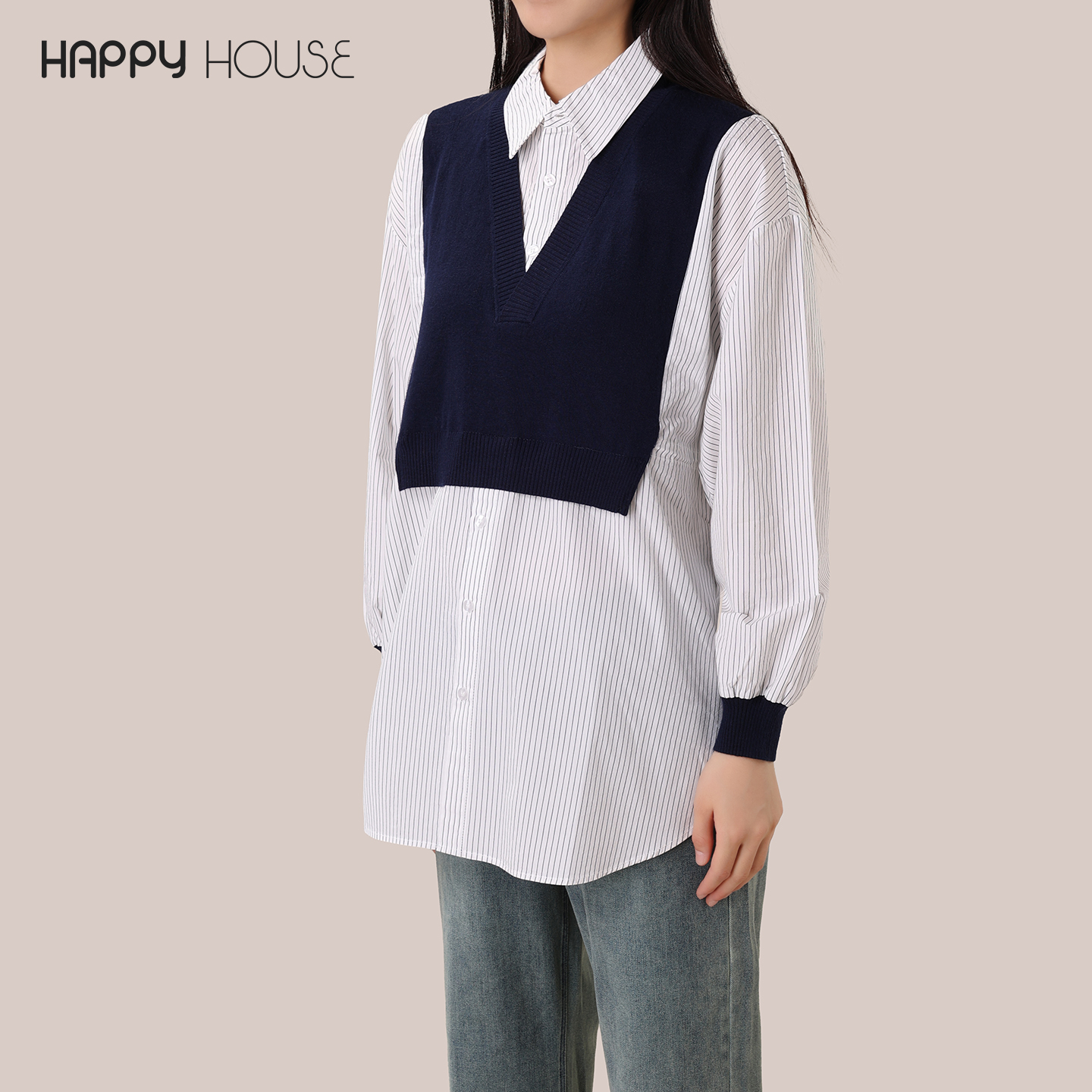 快乐屋孕妇条纹上衣长袖2025新款通勤孕妇装春秋季衬衫宽松打底衫
