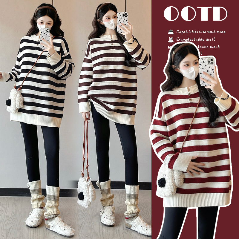 孕妇装秋冬装长袖条纹针织衫套头毛衣冬装保暖打底衫韩版怀孕上衣