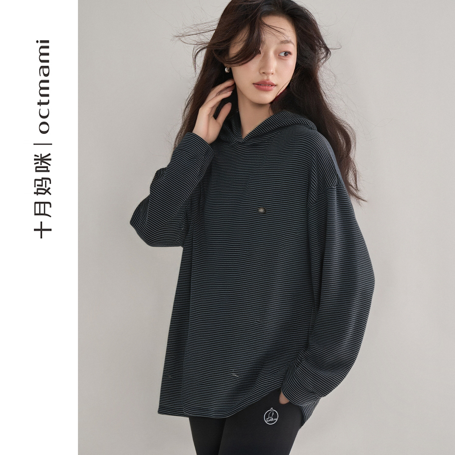 十月妈咪孕妇条纹连帽上衣2025新款秋季外穿宽松长袖卫衣孕妇秋装