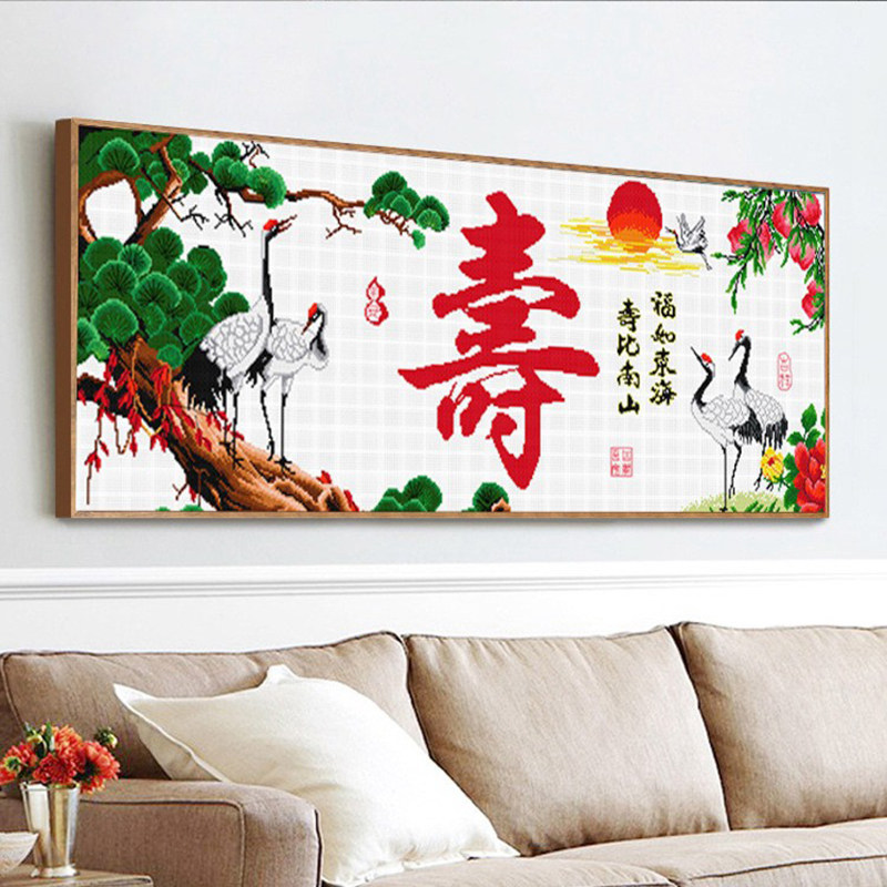 寿字老人祝寿2026年新款自己手工刺绣十字绣线绣客厅简单卧室仙鹤