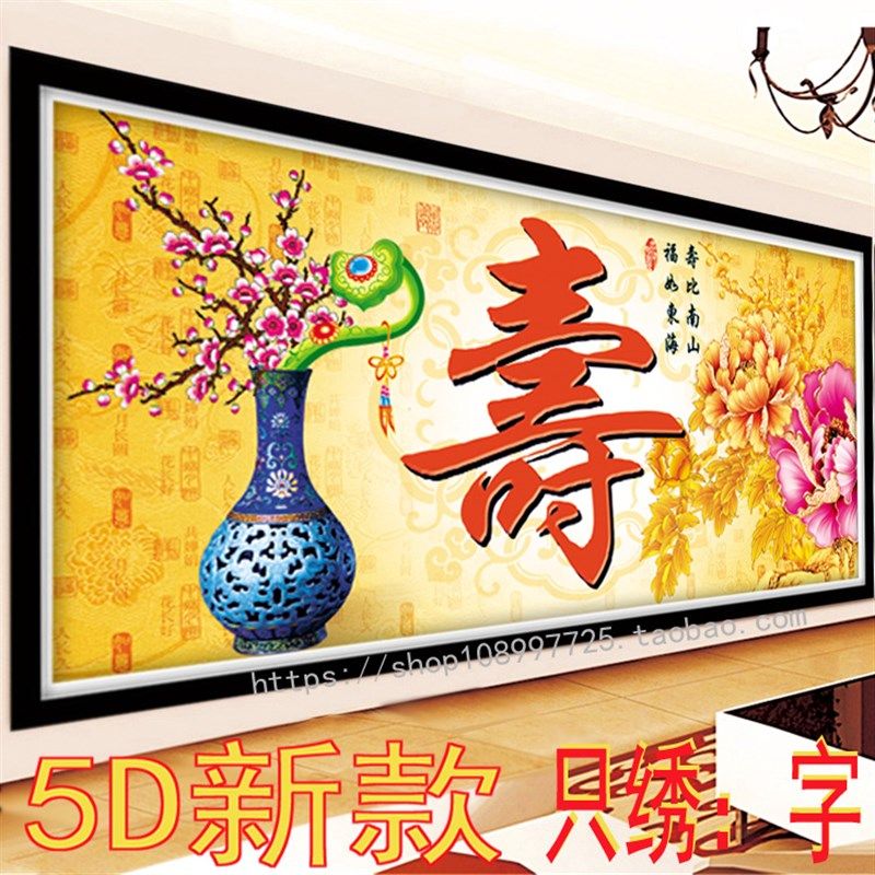 5d点贴钻十字绣2025年新款中国风寿字钻石画客厅卧室满钻寿比南山