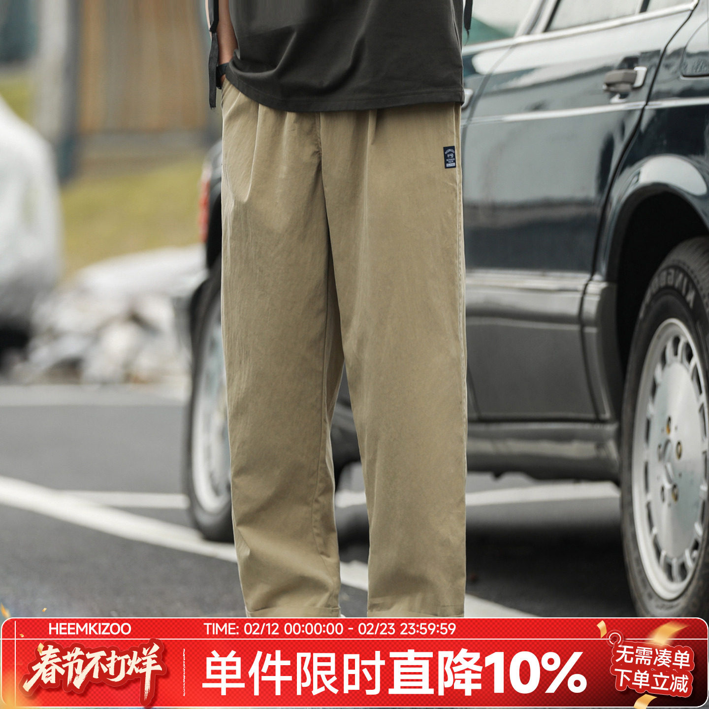 嘿马七作日系复古夏季款男生户外折边九分裤休闲宽松直筒裤子潮牌