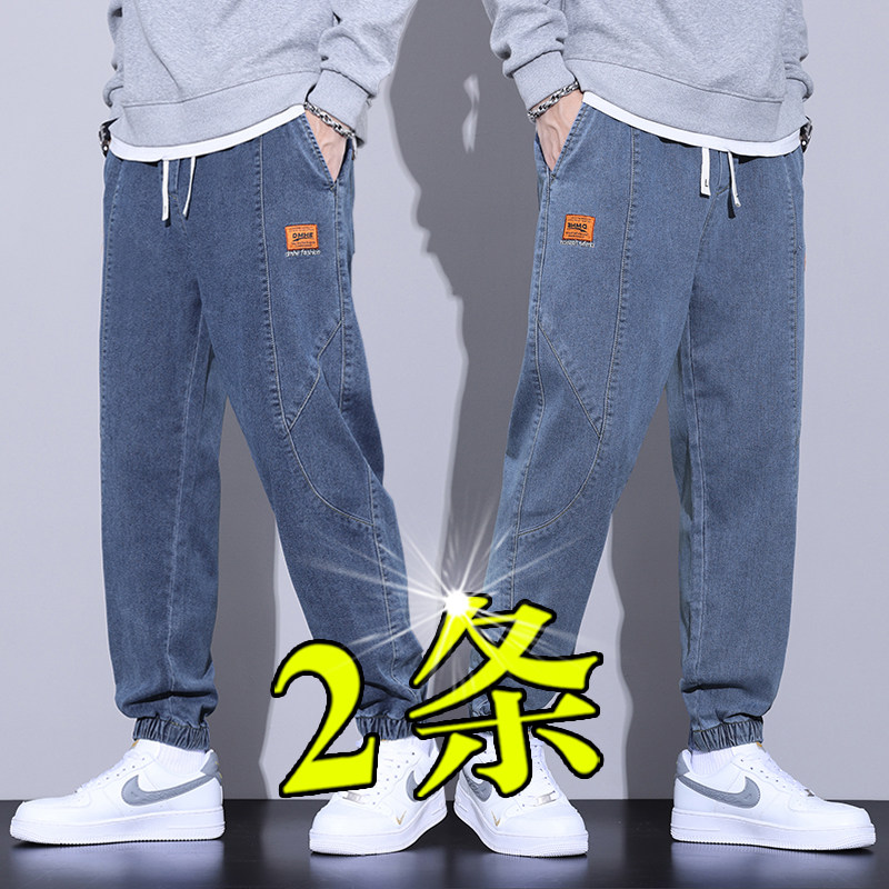 2025春秋新款牛仔裤男潮牌宽松束脚九分裤子男生休闲男士哈伦长裤