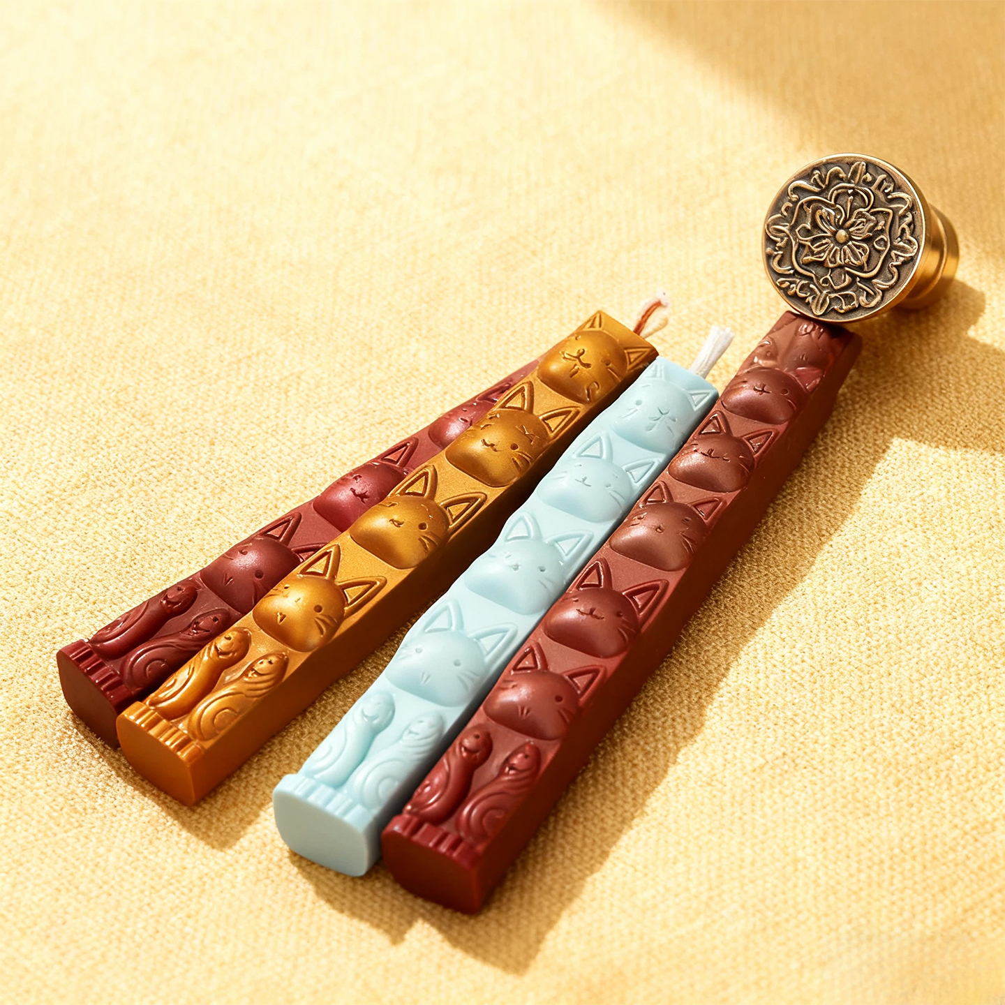 火漆印章蜡棒猫咪图案带引线芯 DIY手工火漆套装礼物请柬书信装饰