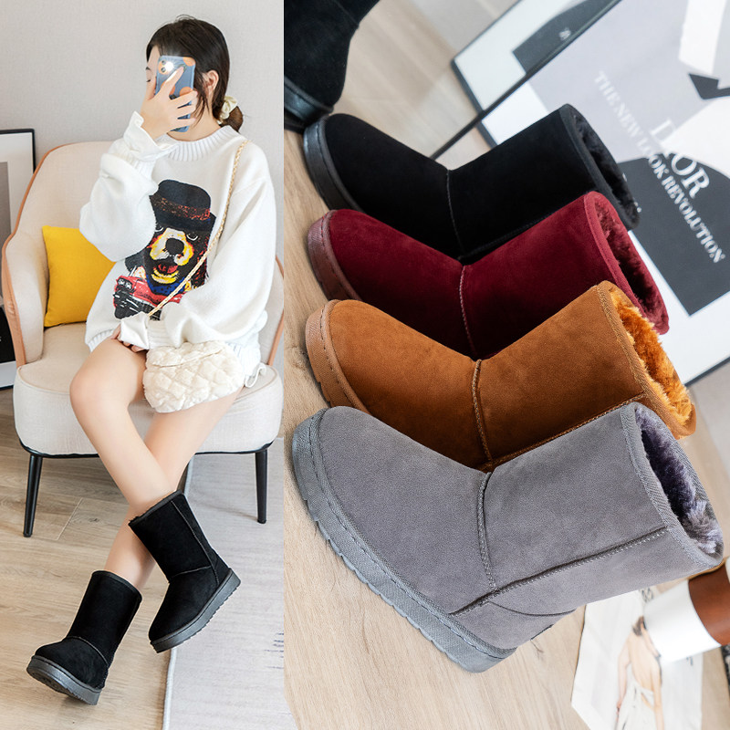 雪地靴女中筒冬季加绒平底加厚防滑东北保暖真皮韩版百搭学生棉鞋