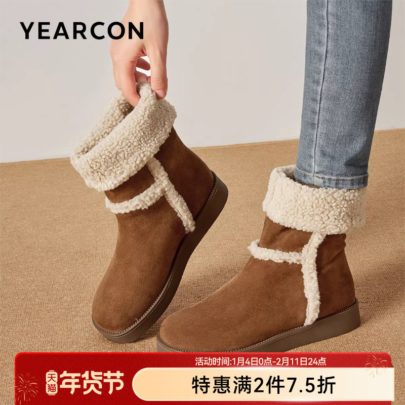 大东女靴雪地靴2025冬季新款复古绒面平底棉靴加绒加厚中筒靴短靴