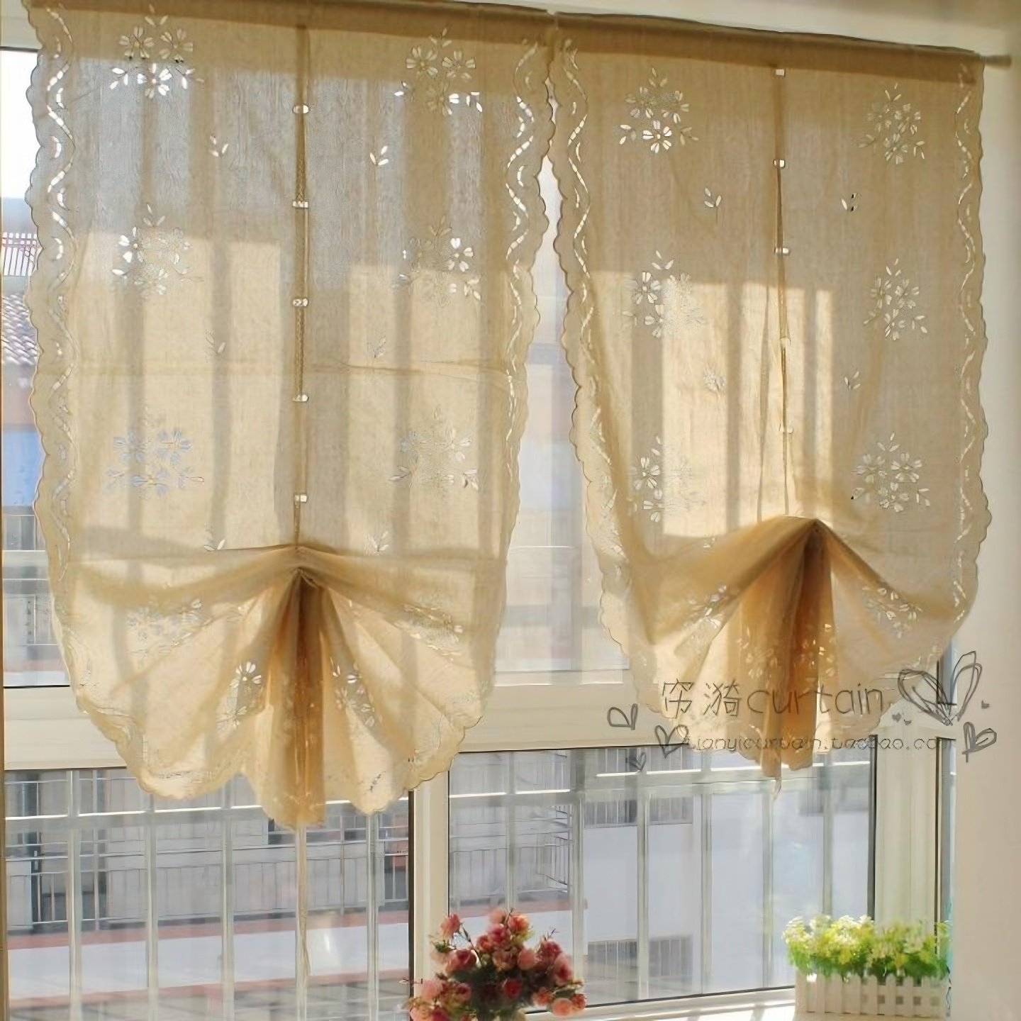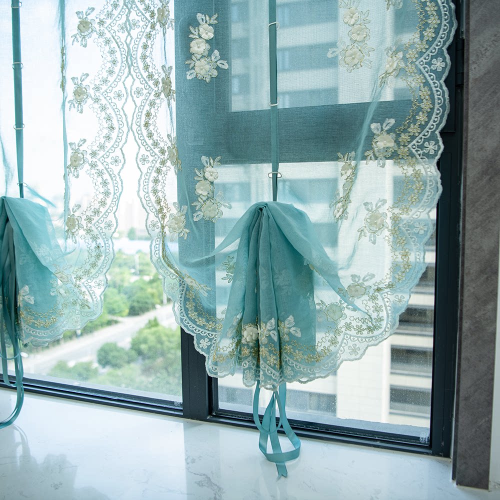 透光不透人短帘半帘气球帘提拉帘窗帘纱帘飘窗罗马帘升降窗帘刺绣