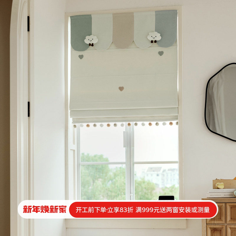 ins风女孩房奶油爱心罗马帘升降窗帘小窗户成品帘儿童房飘窗帘头