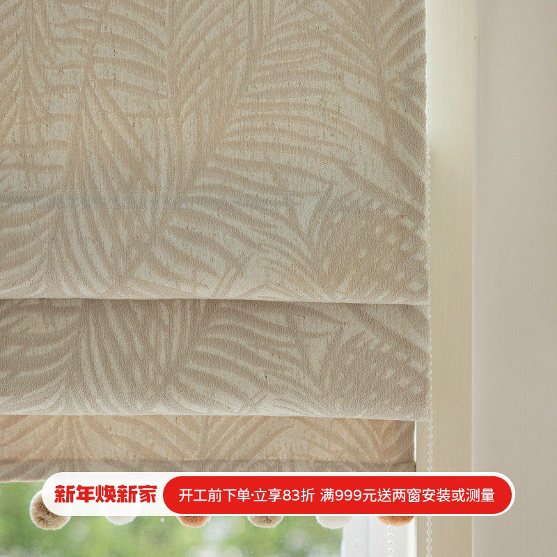 欧式绣花纱帘 扇形卷帘 罗马帘 升降窗帘 米灰 卡其色 餐厅装饰帘