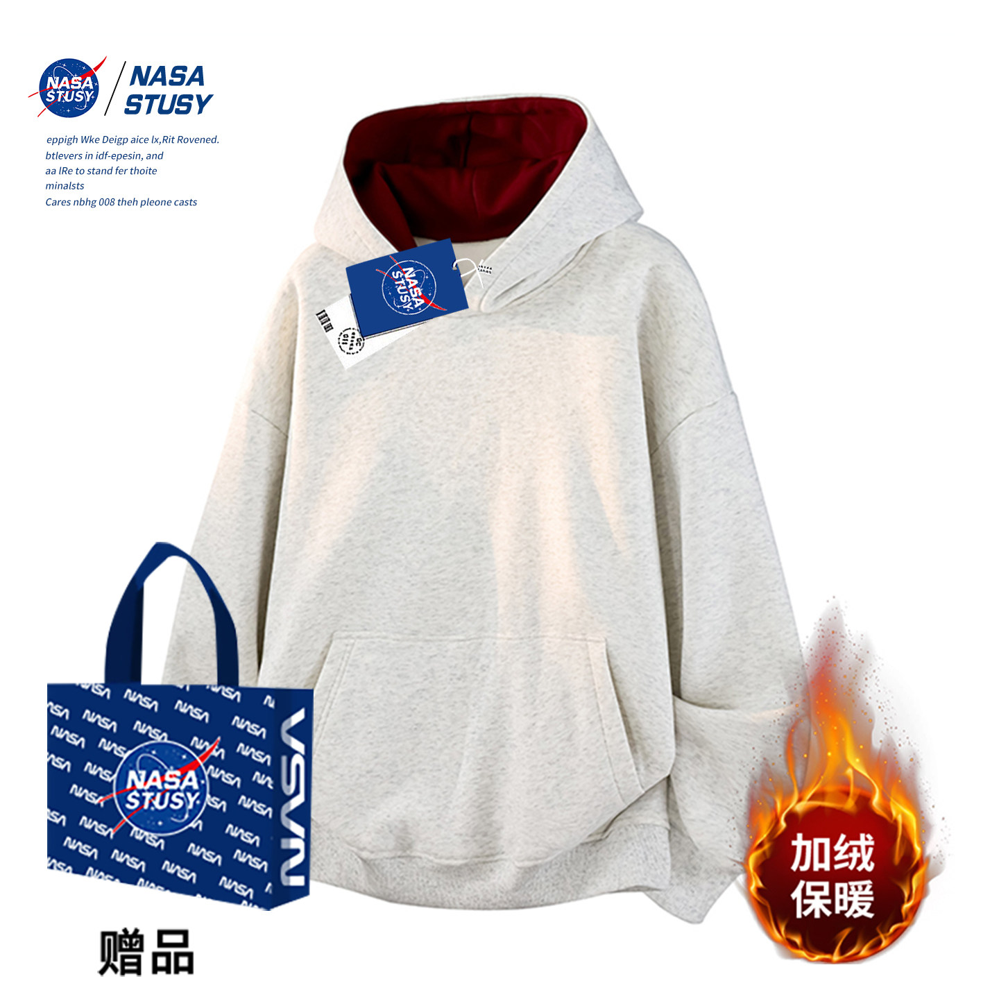 NASA STUSY美式高街2025新款秋冬装男款宽松情侣潮牌加绒保暖卫衣