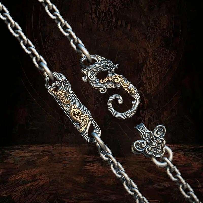 【新年转运】厂家银饰男士项链男款复古吊坠配饰锁骨链中国风兽纹