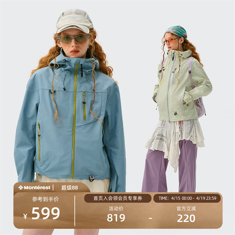 瞬时山野Monterest空山雨户外C6防泼水登山夹克压胶外套冲锋衣女