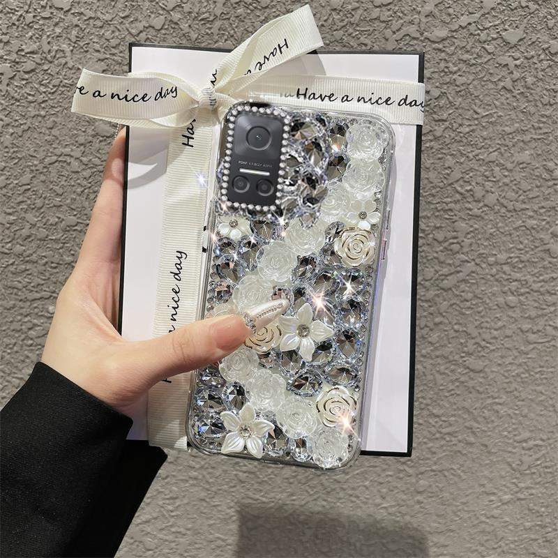 适用13苹果15pro水钻珍珠花朵手机壳iphone16promax全包XR奢华6S高档7/8PLUS/XR苹果12/14PROMAX/13PRO/16E软