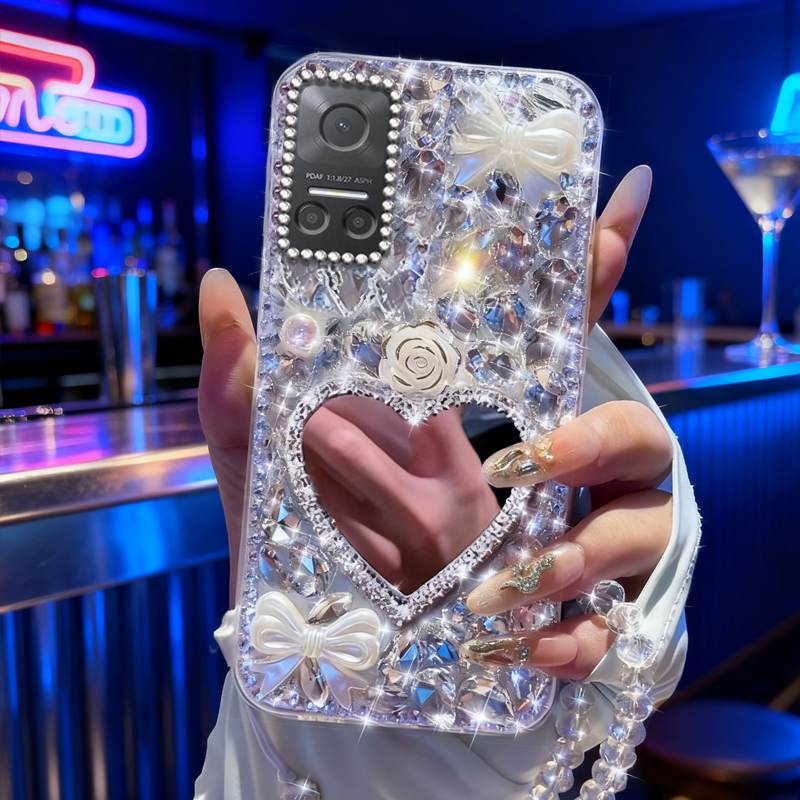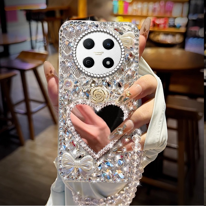 奢华水钻镜子适用华为畅享70pro手机壳高级感80女款60Plus小众Z 5G/2026年30Plus外壳X40i防摔X6网红50Z全包