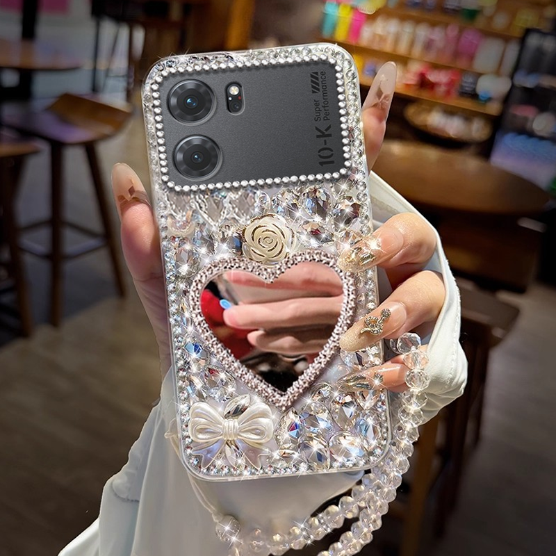 奢华水钻镜子适用OPPOK10手机壳防摔13网红6 /2026年K10活力版保护套K11小众k12x镶钻12全包k12plus外壳7新品